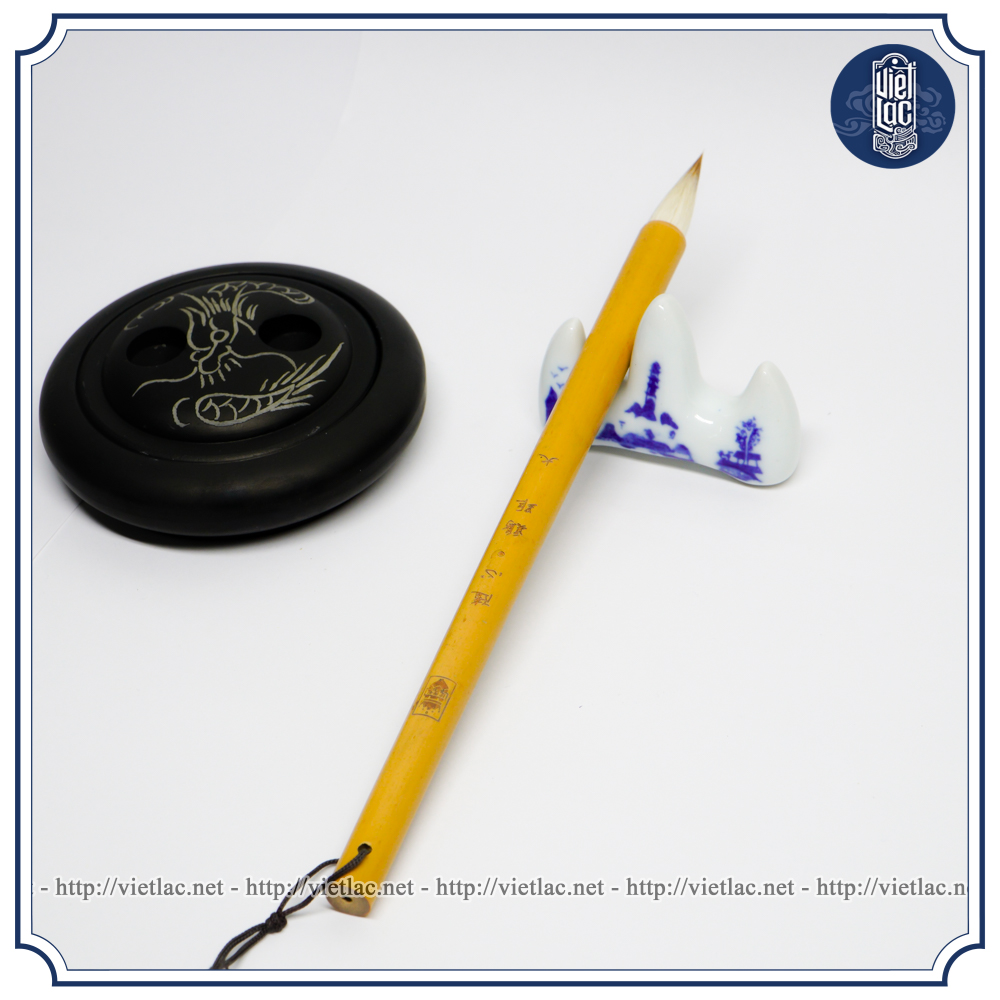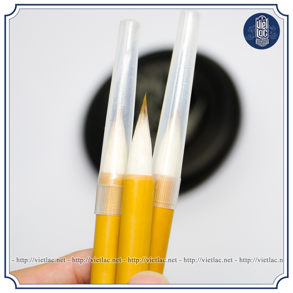 CÁCH SỬ DỤNG BÚT LÔNG: Bút lông khi mới mua về ở phần lông bút được nhà sản xuất nhúng hồ nên lông bút cứng. Nhà sản xuất làm như vậy là để bảo quản bút lông bút không bị hỏng trong quá trình vận chuyển, bán sản phẩm ra thị trường. Bút lông khi mới mua về phải được ngâm phần ngọn bút trong nước lã (không nóng) khoảng 15 – 30 phút cho tan đi phần hồ. Bút sau khi rửa không được nhúng mực ngay mà cần phải lấy nước ra bớt bằng cách lăn nhẹ phần lông bút vào giấy ăn (loại giấy hút nước nhanh). Nếu lông bút đang nhiều nước mà chấm mực ngay thì nước và mực sẽ pha vào nhau, làm cho mực ở phần lông bút bị loãng, đồng thời khi viết lên giấy xuyến sẽ dễ bị nhòe, loang mực. Nên lưu ý là lần sử dụng nào cũng phải thực hiện động tác rửa bút chứ không phải riêng lần sử dụng bút đầu tiện. Bởi lẽ, lúc đầu lông bút còn cứng, ngâm vào nước một thời gian thì lông mới đạt độ mềm mại, viết chữ sẽ đẹp hơn. Nếu không rửa bút mà nhúng vào mực ngay thì phải sau một lúc lông bút mới mềm, tức là lông bút ở trạng thái tốt nhất để bắt đầu viết.