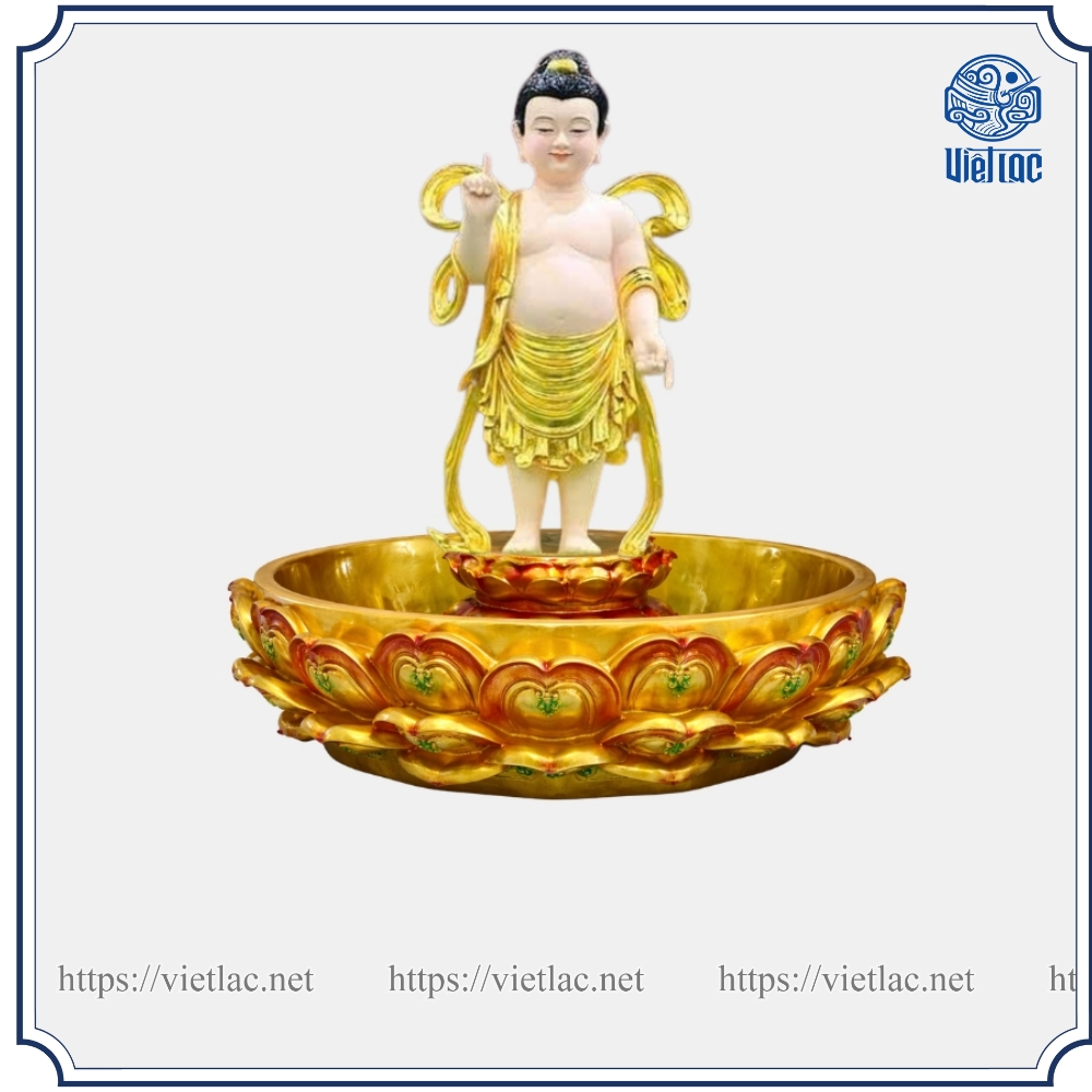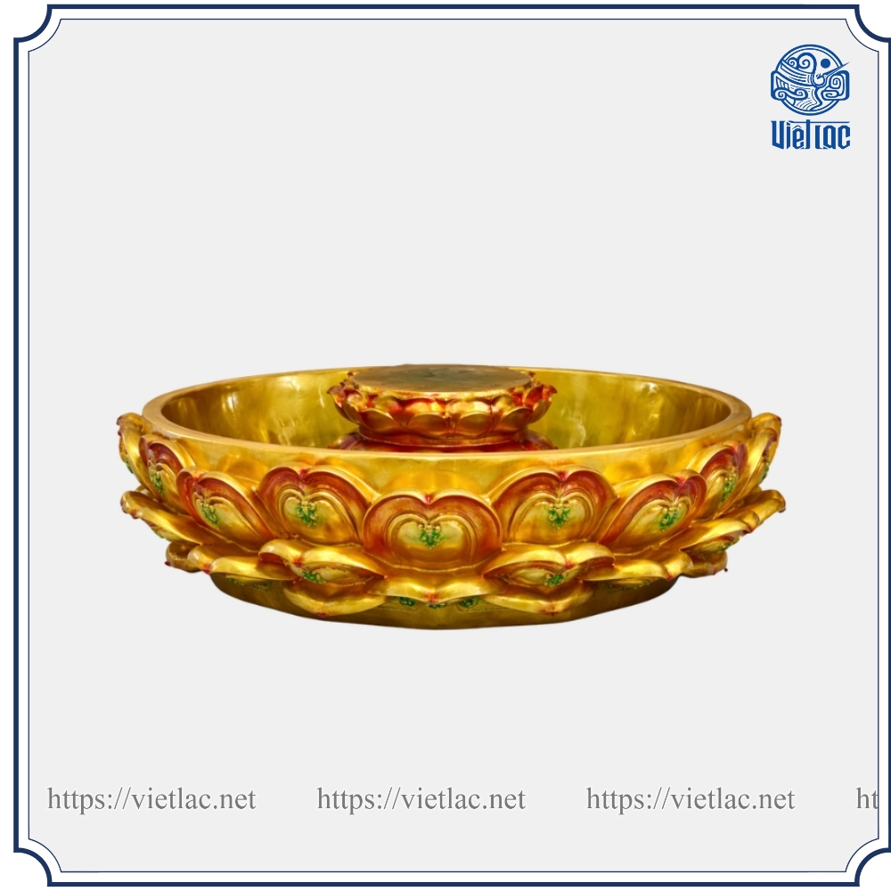 Chậu Tắm Phật Bách Diệp Liên được sử dụng trong nghi lễ Tắm Phật vào dịp Phật Đản tại chùa, tự viện và các đạo tràng. Thiết kế lấy cảm hứng từ đài sen trăm cánh (bách diệp) – biểu tượng của sự thanh tịnh, giác ngộ và trí tuệ trong Phật giáo.