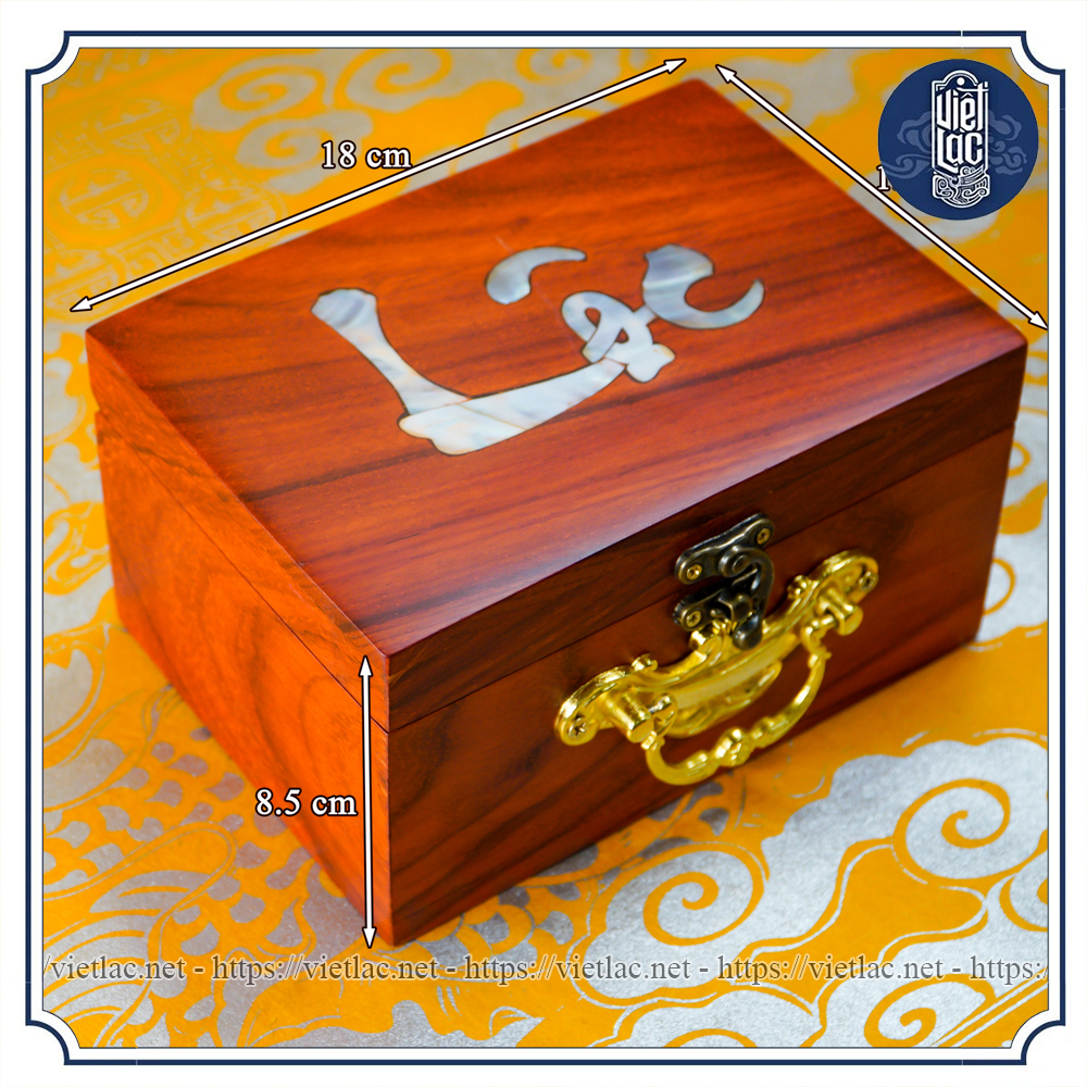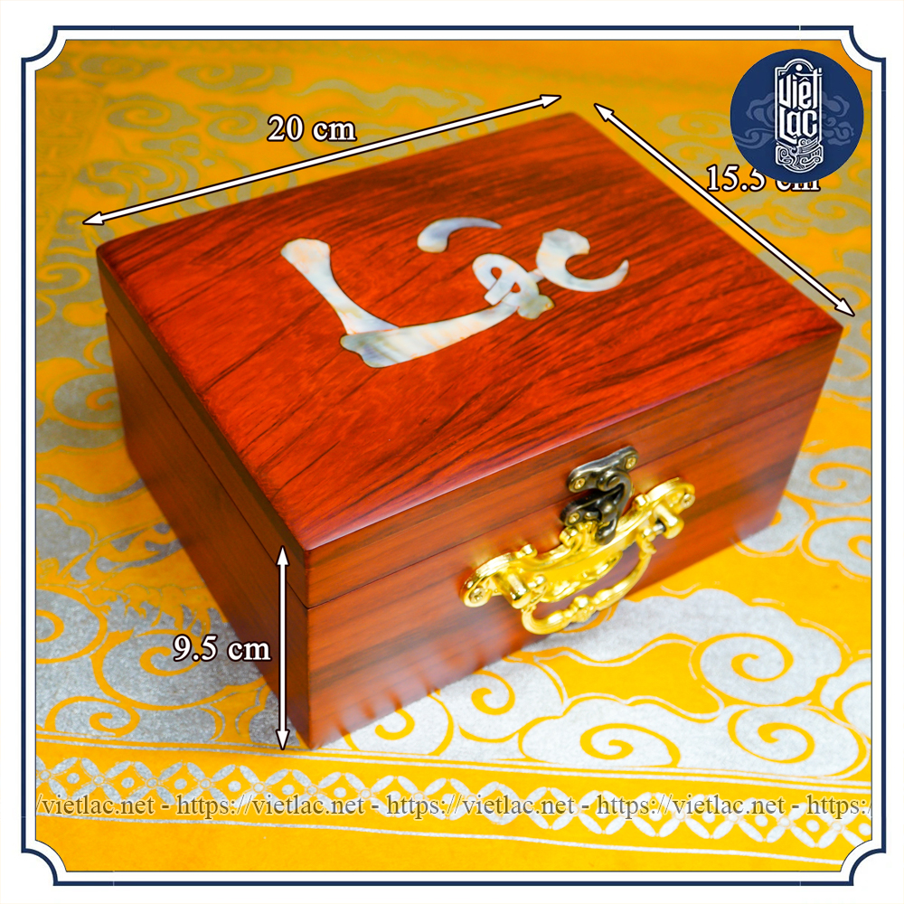 Chất liệu: Gỗ hương huyết, khảm trai, lót nhung đỏ