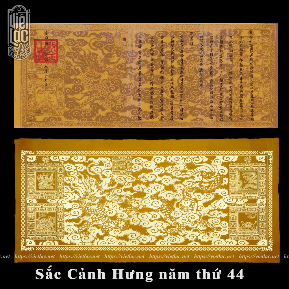Trung Tâm Khoa Học Tín Ngưỡng Việt Lạc tự hào phục sao thành công phôi giấy sắc phong thần triều Lê niên hiệu Cảnh Hưng năm thứ 44, trên nền giấy Long Đằng vàng tươi.