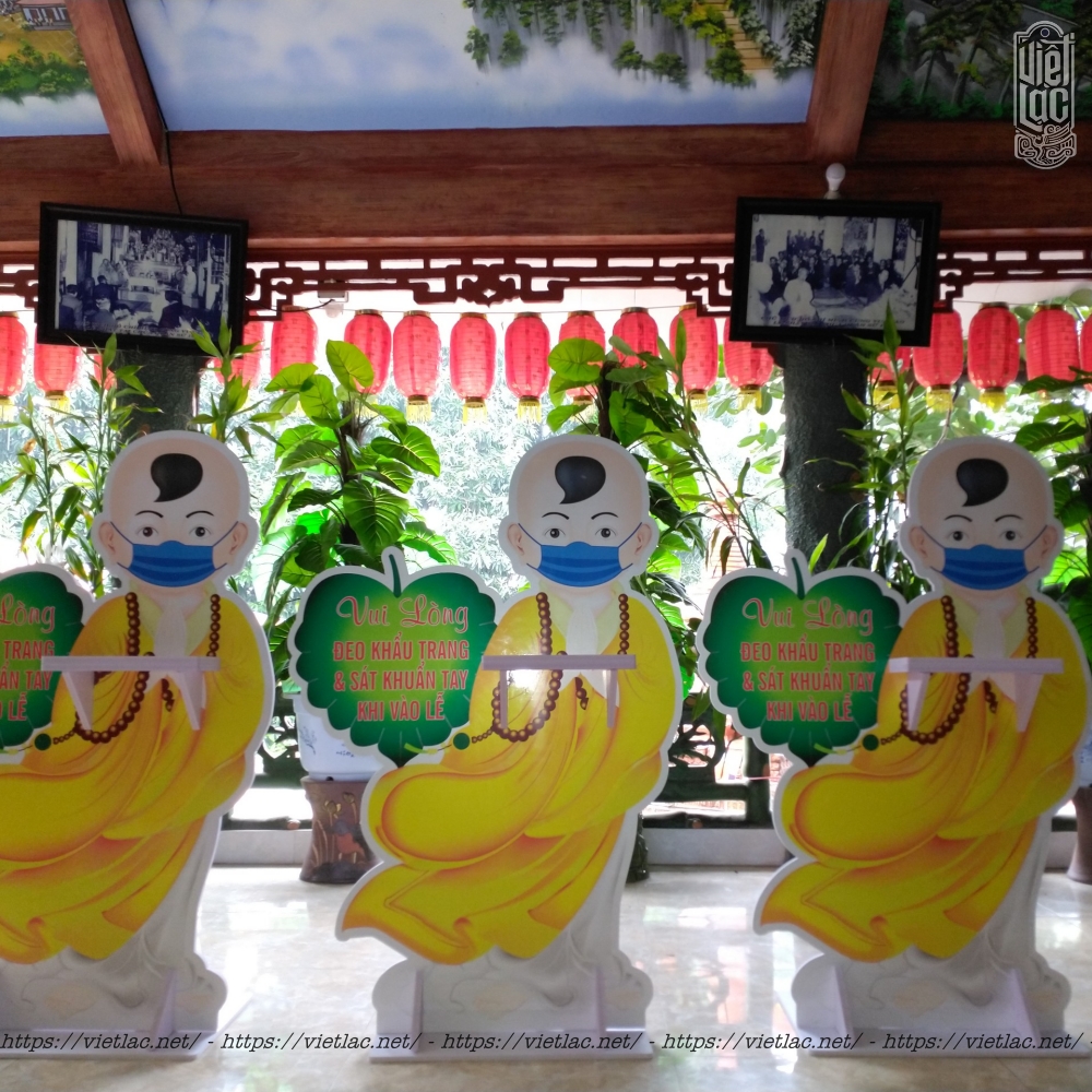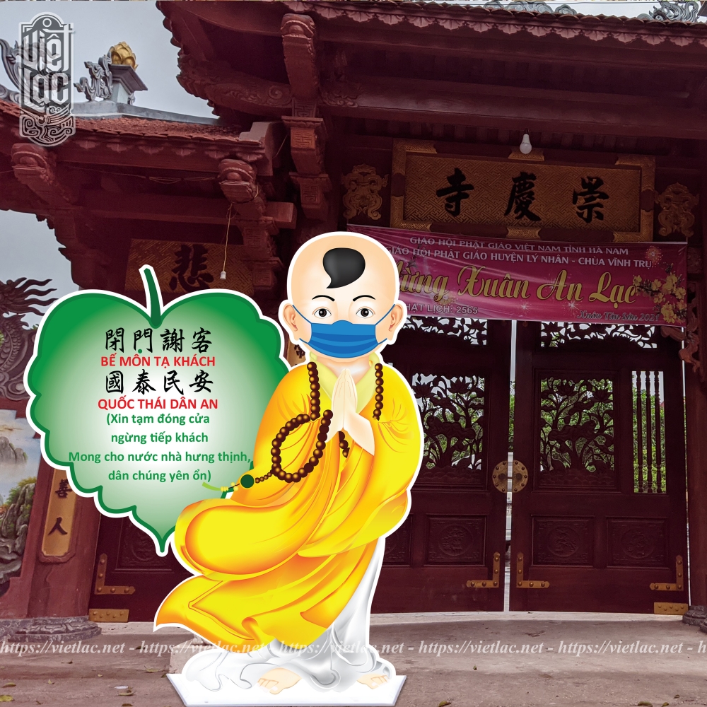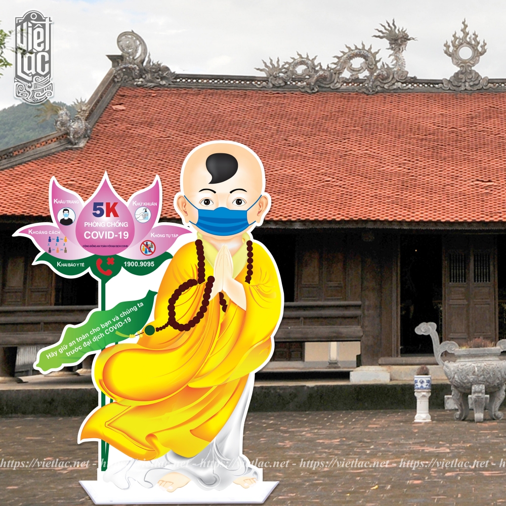 Dịch Covid đang diễn biến ngày càng phức tạp nhưng nhu cầu người dân tới các địa điểm tín ngưỡng vẫn luôn tăng cao. Nhằm nâng cao công tác phòng chống dịch bệnh, Việt Lạc xin giới thiệu tới quý thầy mẫu tượng xốp Chú tiểu phòng dịch, có thể đặt trước cửa chùa để nhắc nhở người dân trước khi vào phải đeo khẩu trang và sát khuẩn.