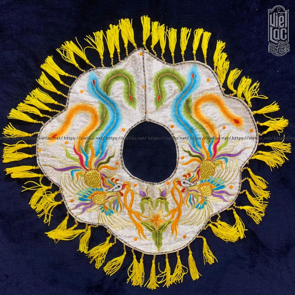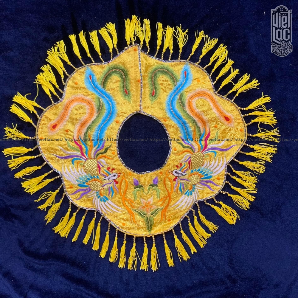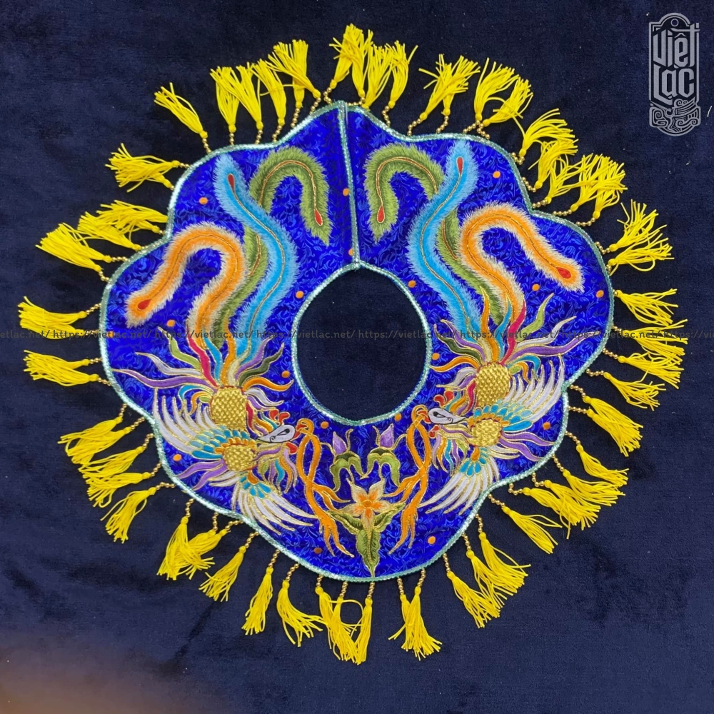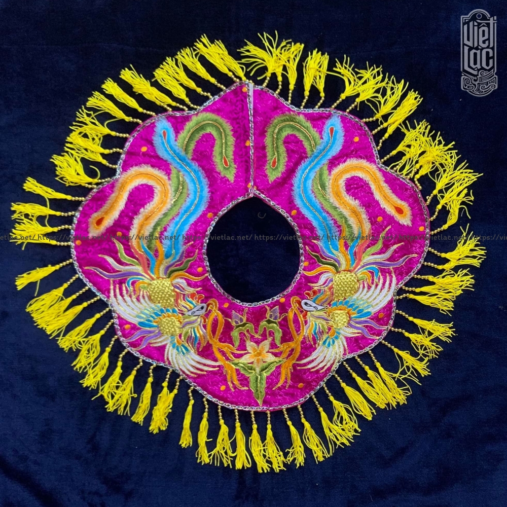 Phượng ngũ sắc thêu nổi trên nền gấm sắc nét